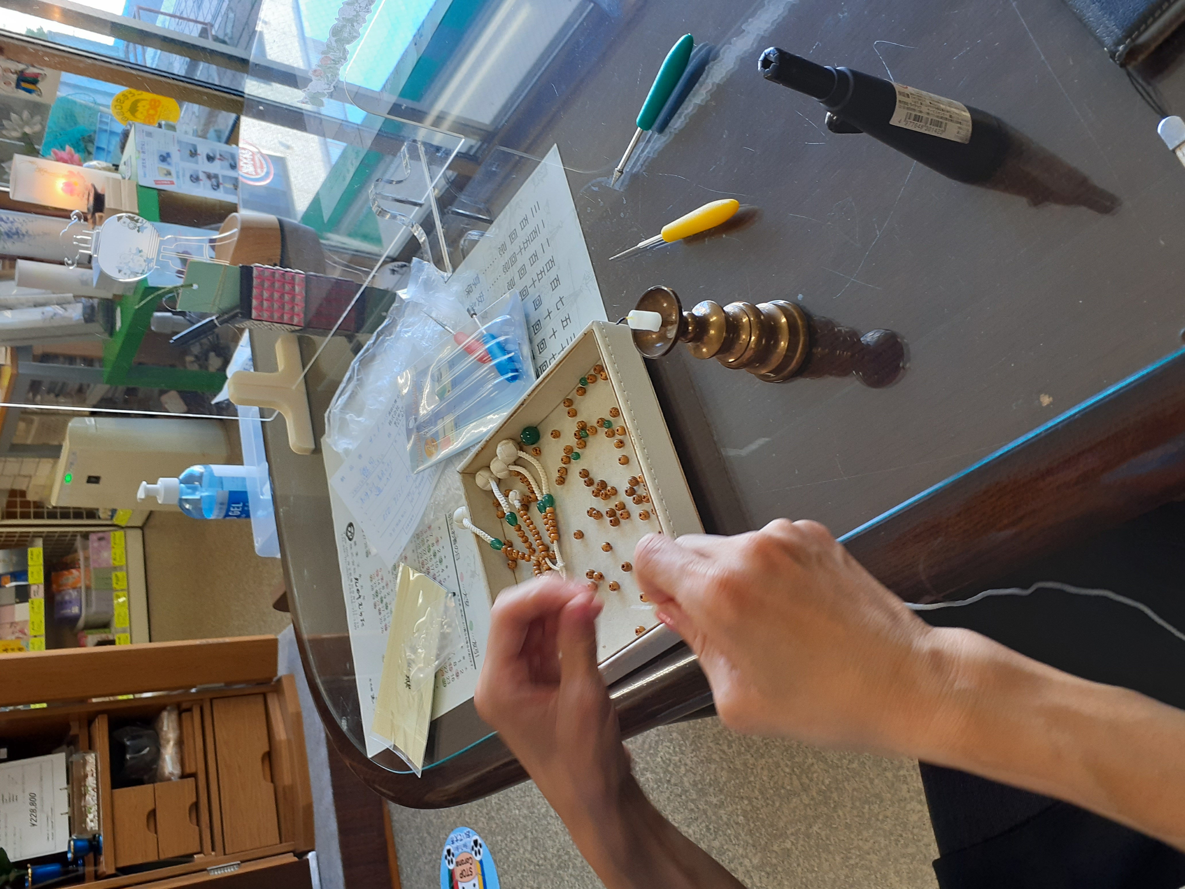 念珠修理 各種念珠の修理うけたまわります。 費用、日数は形状・修理内容によってことなります。 長手(両手)念珠の中通しのみの修理は、10日ほど¥1,200~です。 片手念珠、長手(両手)の房ごとの修理は、2か月ほど平均¥10,000前後です。 お問合せください。